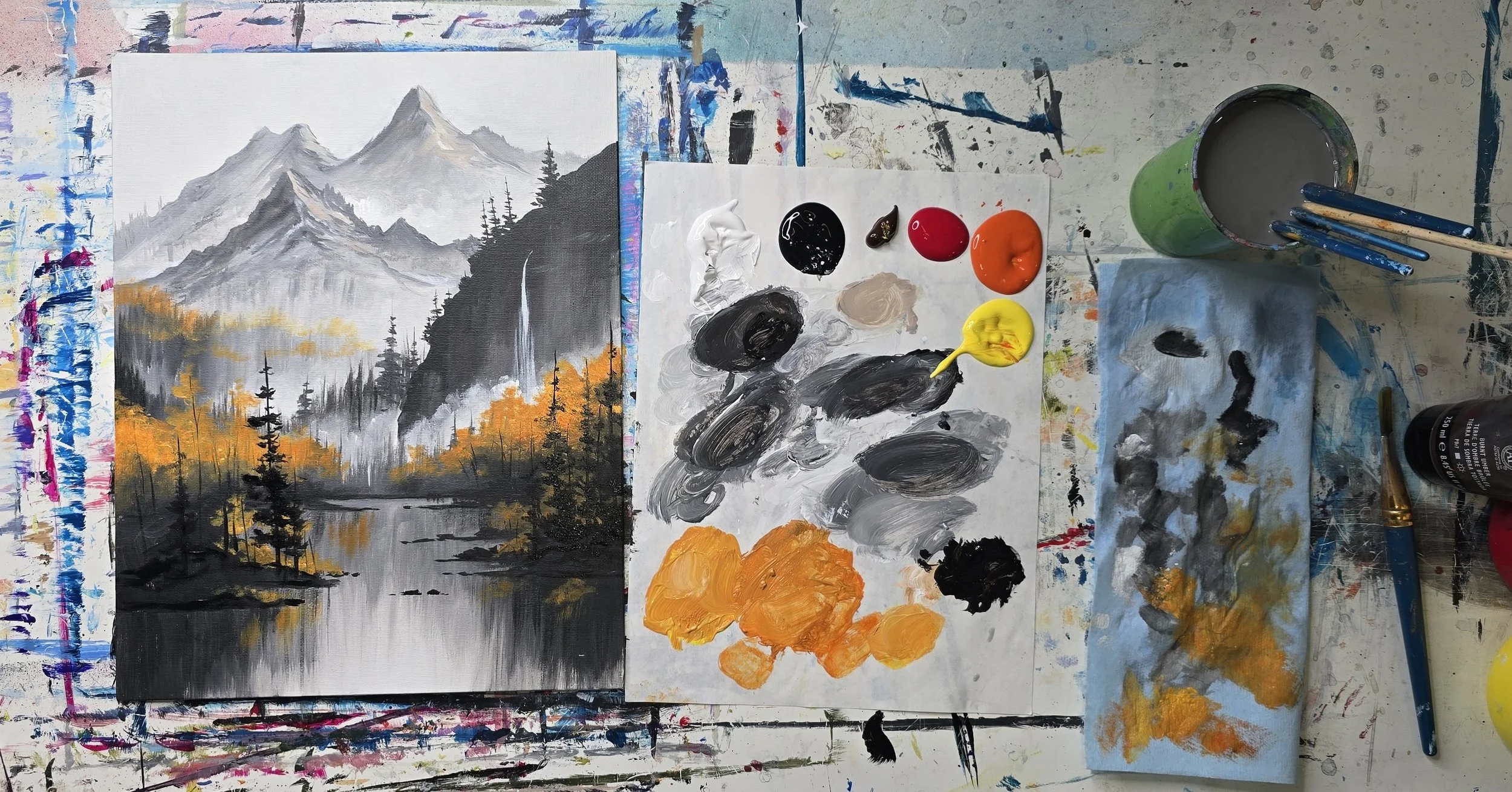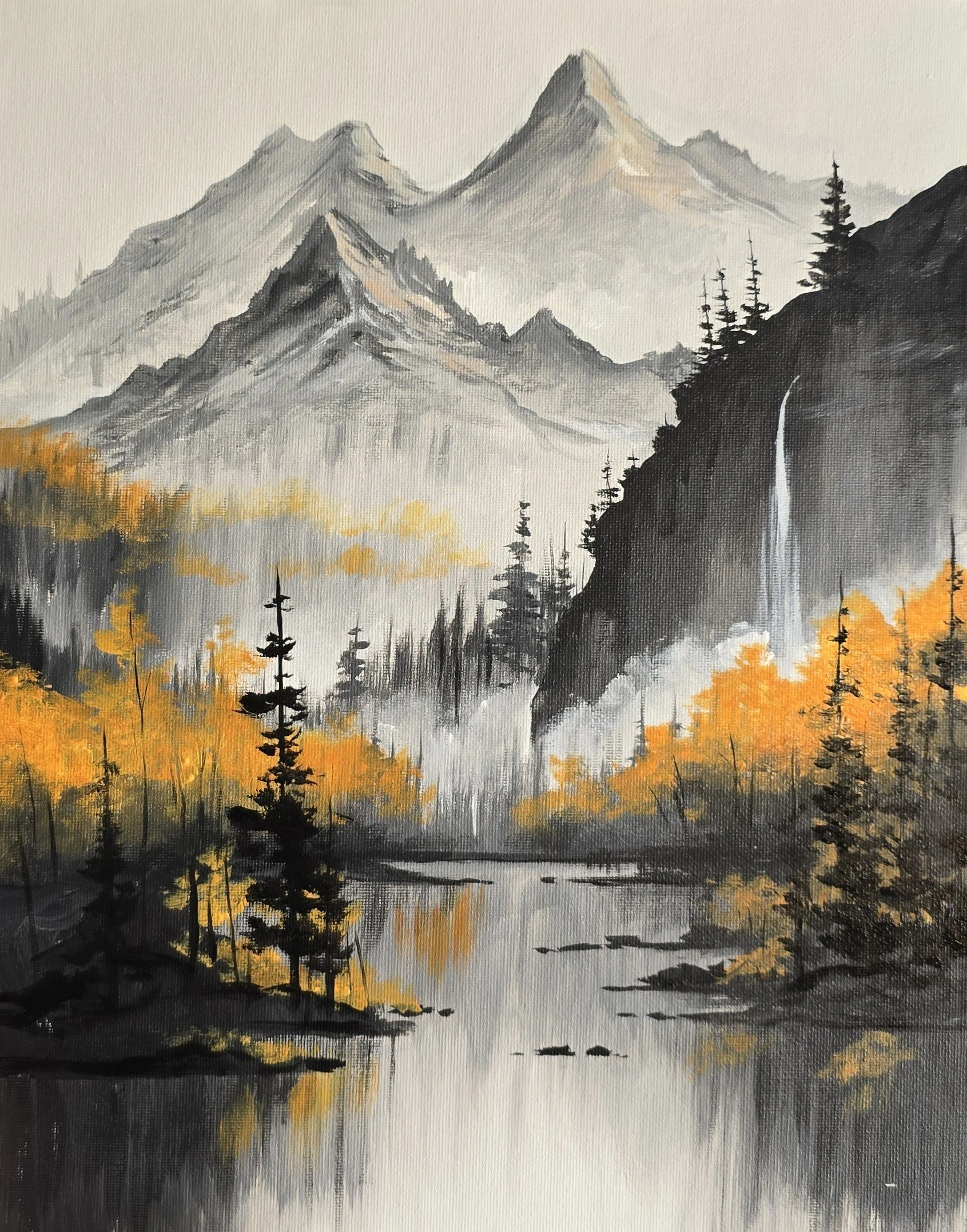Golden Mountains Fall Landscape Acrylic Painting Tutorial Step-By-Step