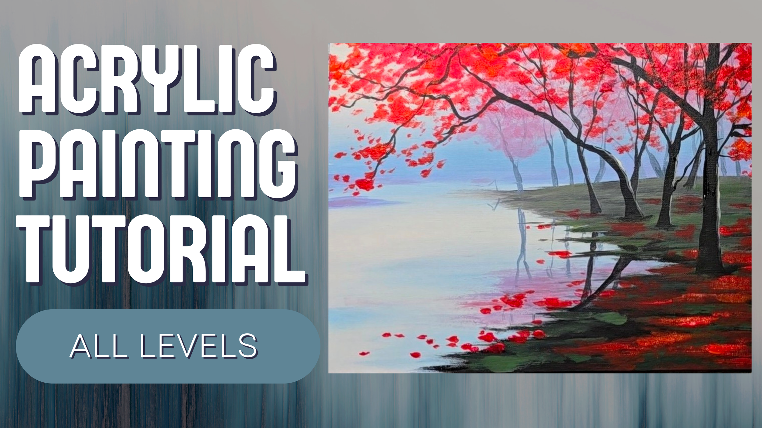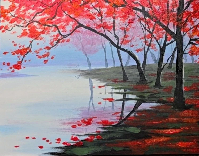 Cherry Blossom Trees Lake Acrylic Painting Tutorial Step-By-Step